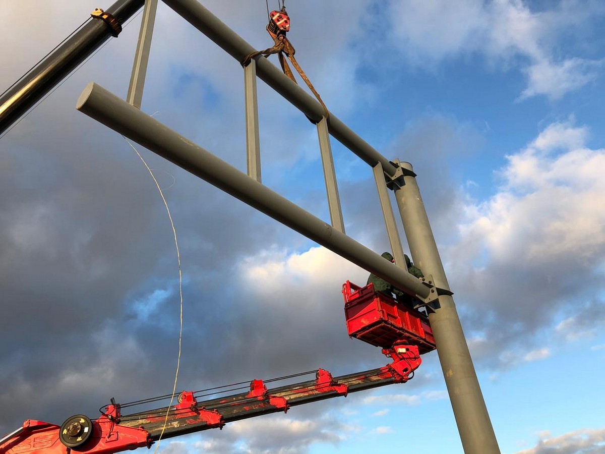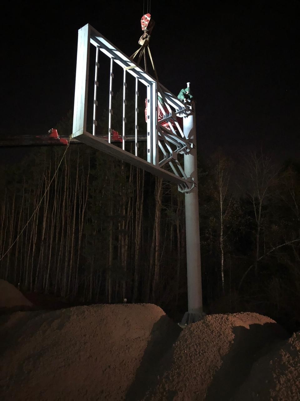 Дорожный информационные указатели и экраны – опора из трубы 530х10 высотой более 10 метров. Крепеж через фланцевое соединение на высокопрочных болтах.